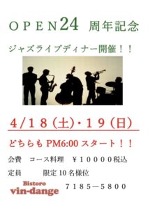 🎷Jazzライブディナー🎻を開催致します🎉